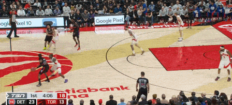 底线球CC发球,里德为邓罗掩护切入眩惑珀尔特尔回收,随后里德接球愚弄半空位快速入手射中三分。