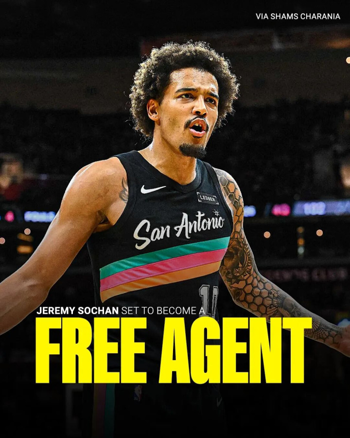 来自名记Shams的最新报谈,马刺还是与时尚杰里米索汉达成解约,后者将成为解放球员,展望他会在多支对我方感兴味的球队里作出聘任。